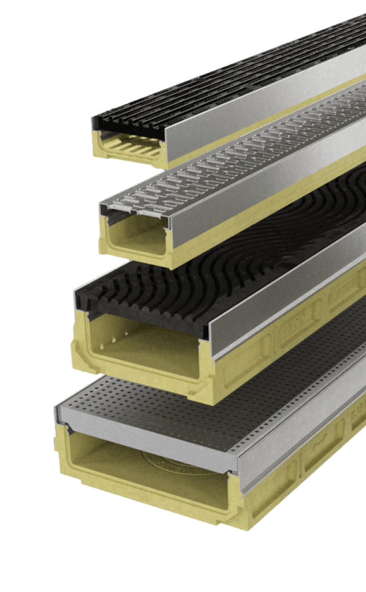 Nuestros sistemas están fabricados con concreto polimérico y acero inoxidable, materiales que ofrecen ventajas únicas: